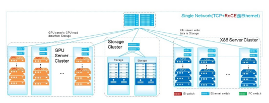 鑒于以太網(wǎng)是生態(tài)最完整、應(yīng)用最廣泛的網(wǎng)絡(luò)技術(shù)路線,為了降低數(shù)據(jù)中心網(wǎng)絡(luò)的總擁有成本(TCO,Total Cost of Ownership),前端網(wǎng)絡(luò)、存儲(chǔ)網(wǎng)絡(luò)和計(jì)算網(wǎng)絡(luò)三張網(wǎng)絡(luò)的技術(shù)歸一到以太是不可避免的,這就是開放數(shù)據(jù)中心委員會(huì)ODCC開展的研究項(xiàng)目“數(shù)據(jù)中心三網(wǎng)合一”。如圖2所示,利用三網(wǎng)合一技術(shù),可以大幅降低數(shù)據(jù)中心網(wǎng)絡(luò)的TCO,并顯著降低組網(wǎng)和運(yùn)維工作的復(fù)雜性。