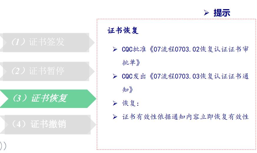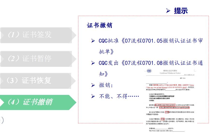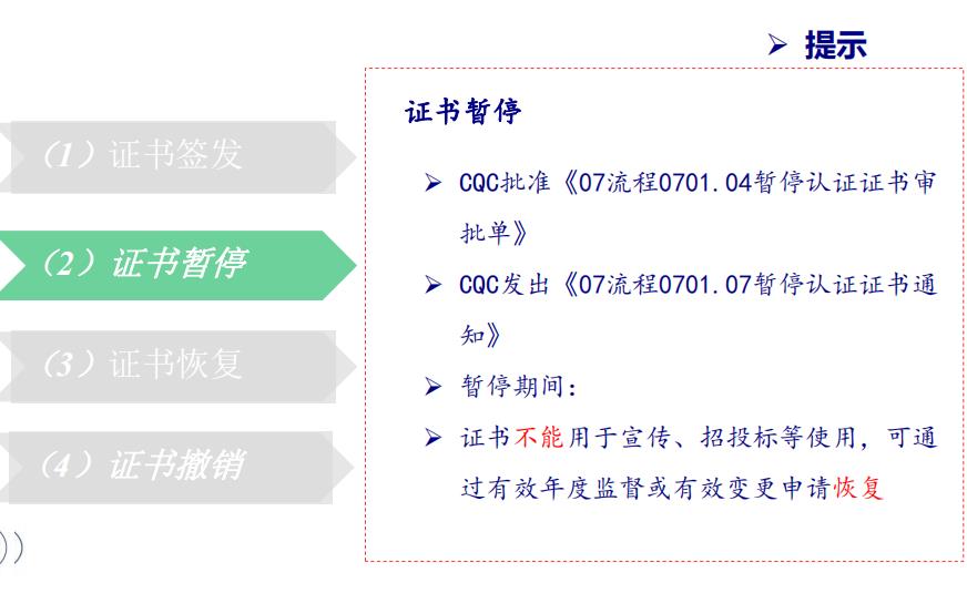 ;根據認證實施規(guī)則,證書暫停,甚至證書注銷