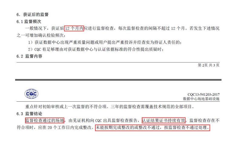 數據中心CQC認證實施規(guī)則明確規(guī)定