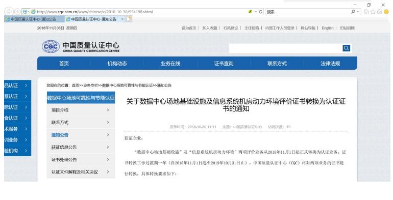 通知見:首頁>>業(yè)務專欄>>數據中心場地可靠性與節(jié)能認證>>通知公告