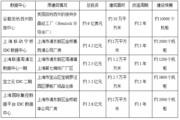 數(shù)據(jù)中心是用電大戶,外市電是限制數(shù)據(jù)中心建設(shè)規(guī)模的主要瓶頸。隨著產(chǎn)業(yè)升級(jí),老廠房?jī)?nèi)機(jī)器的停轉(zhuǎn)使得其電力有所富余,充足的供電能力擊中了數(shù)據(jù)中心建設(shè)的痛點(diǎn)。