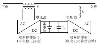 • 市電正常時(shí),市電經(jīng)過AC-DC和DC一AC兩次變換后向負(fù)載供電