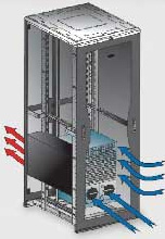 除了上述控制機(jī)柜空氣流通的被動方案外,帶有風(fēng)扇系統(tǒng)的機(jī)柜也可用來控制機(jī)柜內(nèi)空氣的流通。但是一些頂部安裝風(fēng)扇的機(jī)柜系統(tǒng),具有的優(yōu)勢微乎其微。而其它一些風(fēng)扇系統(tǒng),如將底層空氣輸向機(jī)柜前端的系統(tǒng)或從機(jī)柜后端主動排除熱空氣的系統(tǒng),都可以有效改進(jìn)機(jī)柜內(nèi)的空氣流通,減少短路循環(huán)和提供機(jī)柜利用率。
