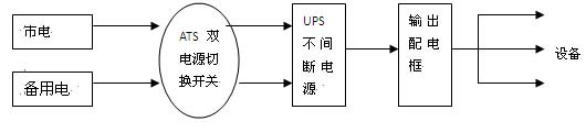 這是傳統(tǒng)數(shù)據(jù)中心普遍采用的供電方案,數(shù)據(jù)中心采用兩套供電輸入系統(tǒng),一套市電,一套備用電,備用電可以是蓄電池或柴油發(fā)電機(jī)組,市電是主用供電系統(tǒng),當(dāng)市電故障時(shí),通過(guò)ATS自動(dòng)切換到備用電上,這樣斷電故障不會(huì)對(duì)后端設(shè)備產(chǎn)生影響。高精度的UPS供電切換時(shí)間可以在30MS以下,可以滿足絕大部分設(shè)備持續(xù)供電。